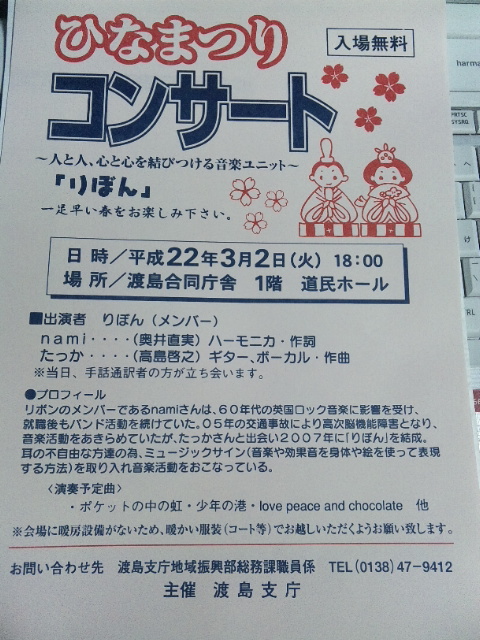通称 渡島支庁の1階ロビーでりぼんのコンサート。
