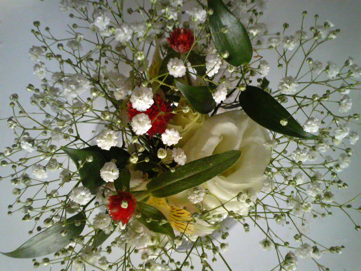 周りをかすみ草でいっぱいにして、飾ってあります。